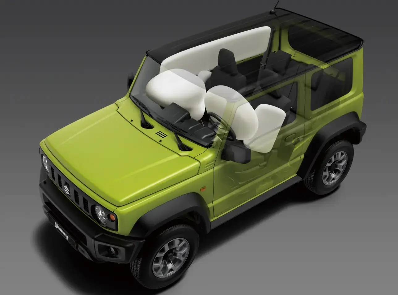 Túi khí phía trước SRSSuzuki Jimny được trang bị 6 túi khí SRS , giúp hấp thụ tác động khi bị tai nạn bảo về hành khách phía trong xe. |
